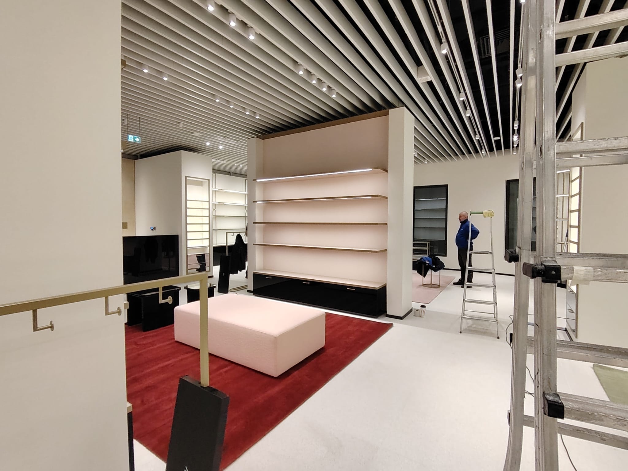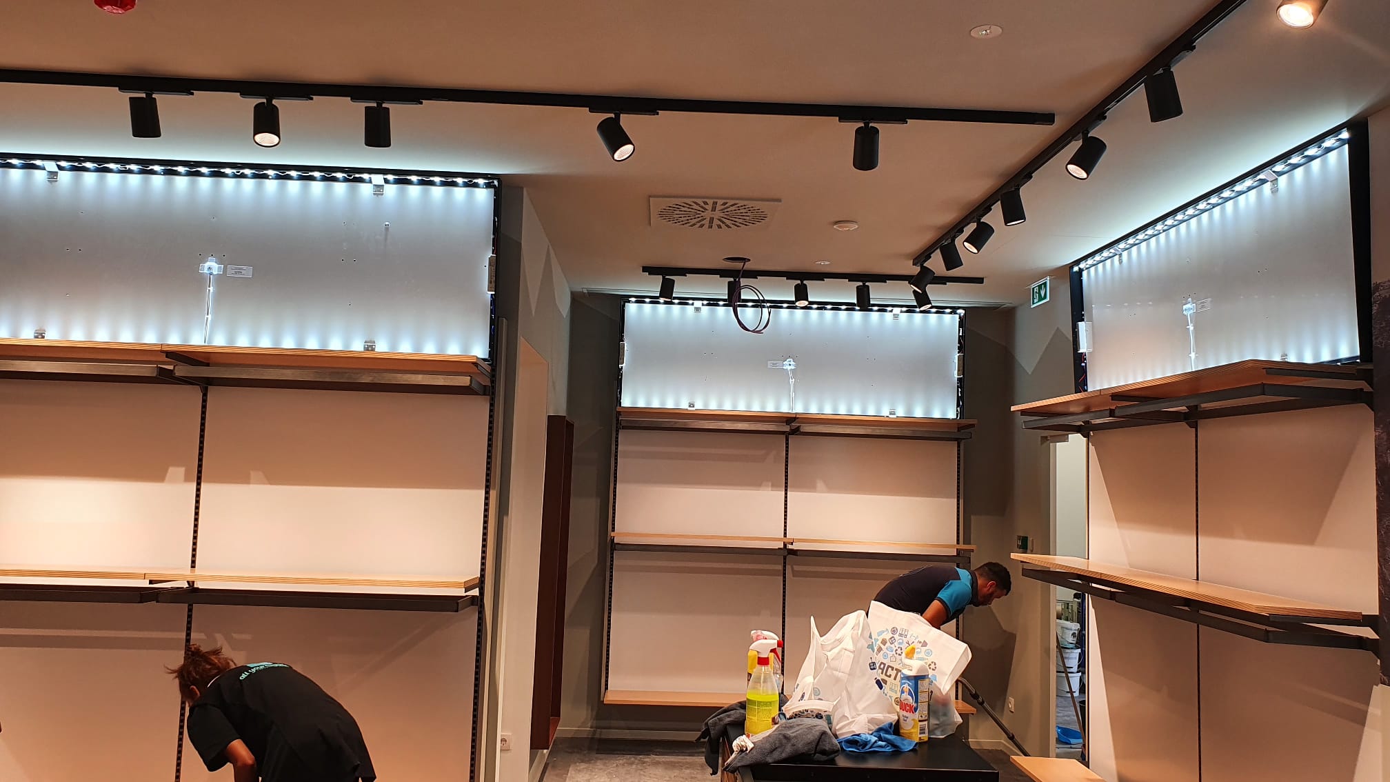 In questo progetto, il nostro obiettivo era trasformare l’atmosfera di un’attività commerciale, dando un aspetto fresco e vivace. Abbiamo iniziato con il cambiamento del colore delle pareti, scegliendo tonalità più accesi e moderne, per stimolare una sensazione di energia e accoglienza.